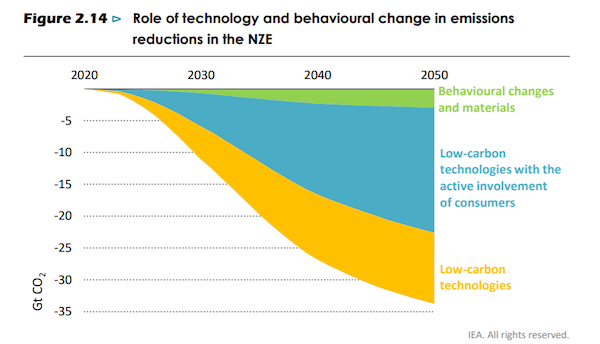 Indeed, the IEA describes multiple pathways for encouraging behavior change, with these sorts of voluntary “nudge” strategies (changing how energy decisions are framed and presented) accounting for only about 8% of energy savings.