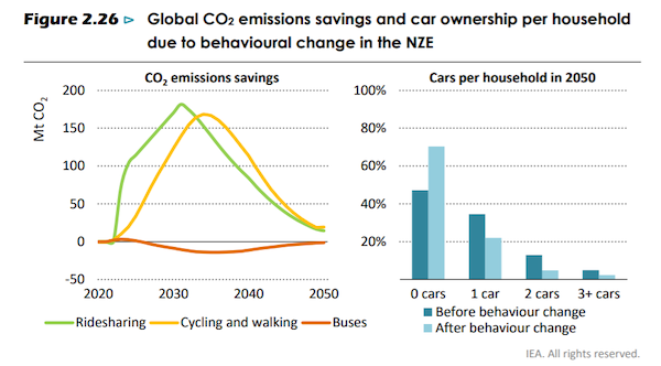 As part of behavior change, the IEA includes any energy savings that require consumers to change their demand for energy. Although nearly 40% of energy savings can be achieved without any shifts in consumer decisions or lifestyles, the rest will come from changes in how we do things, from adopting new technologies to changing how (and how much) we travel.